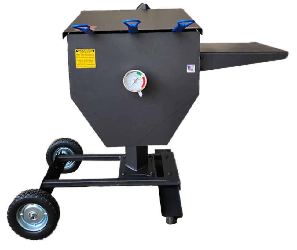 - Cool-touch handles, built-in 2.5” thermometer, and swivel caster wheels make it easy to use, safe to move, and simple to monitor.