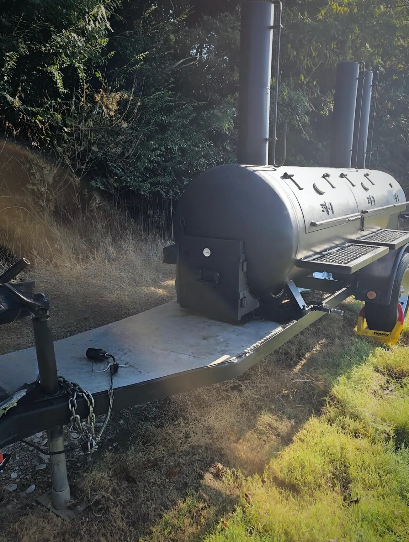 Rent Our Custom 250-Gallon Offset Smoker on Trailer – Built to Impress, Ready to Perform