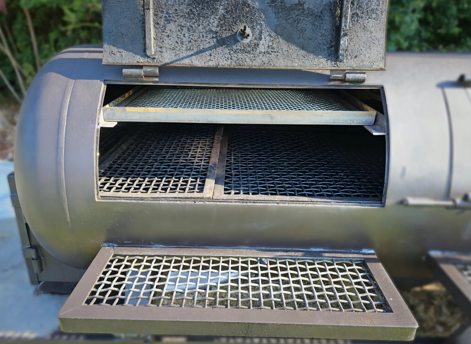 - Dual access doors and multi-section grates allow for zone cooking and heat control across meats and sides
